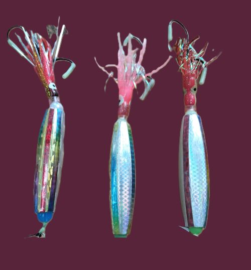 | アオリイカ針・重量55g・全長34cm・餌→サンマを刺して使用します・1本1050円・在庫即在ります! | 当店オリジナルサビキオモリ交換自由で使いやすさ抜群200円 |